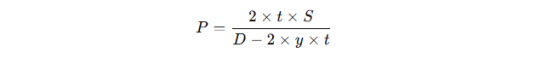 According to ASME B31.3, the design pressure formula for thick-walled pipes is as follows: